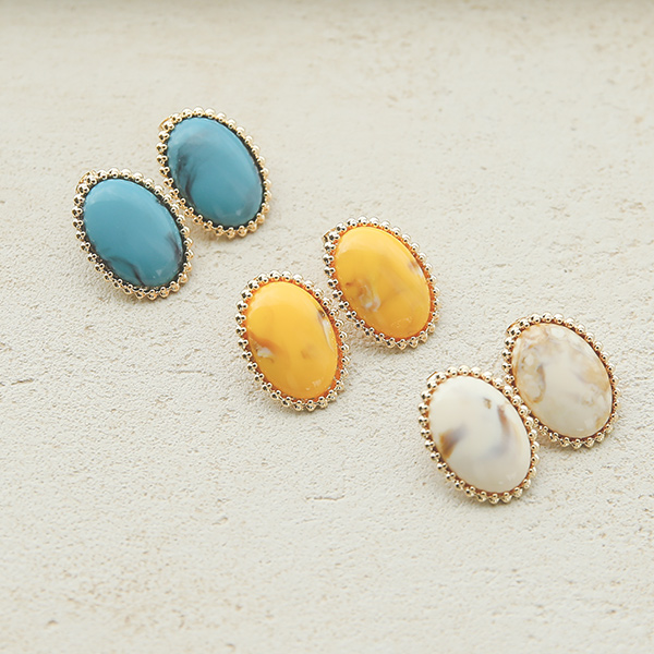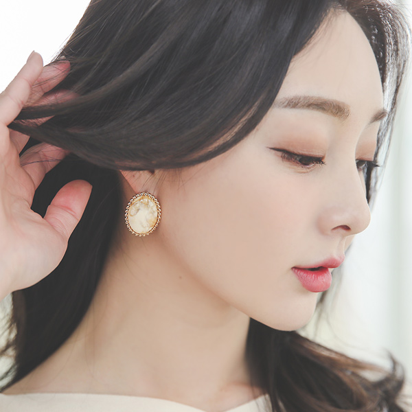粗 迷你 黄金环 大理石 耳环