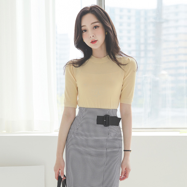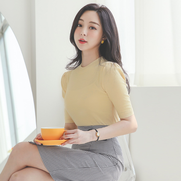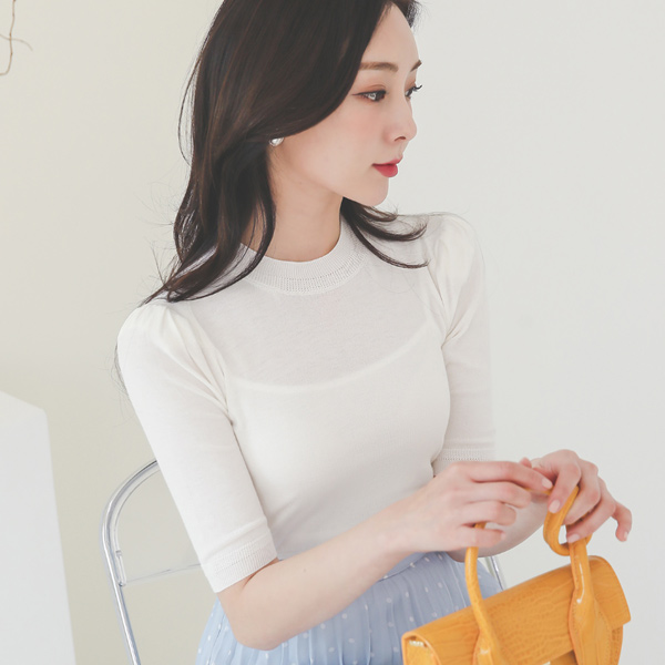 宽松 罗纹布 泡泡袖 袖 针织t恤