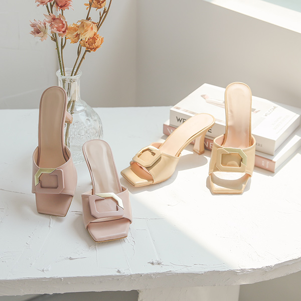 斜线 Gold 方形 拖鞋 高跟鞋