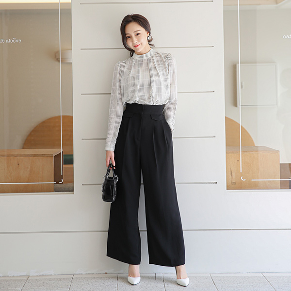 单 双 口袋 细褶 宽松 宽松长裤