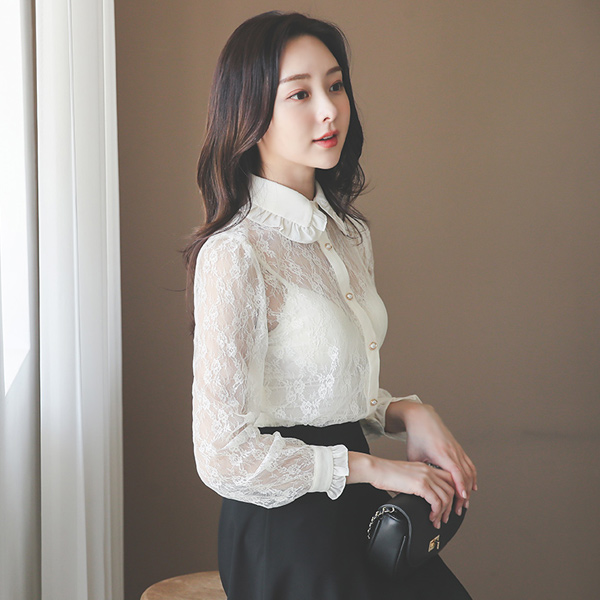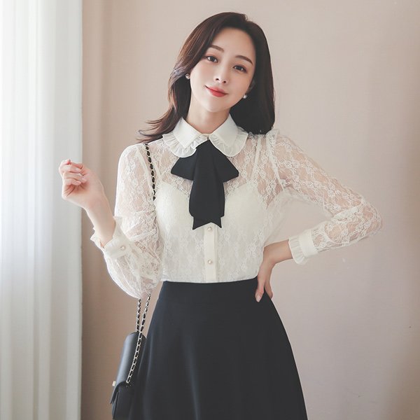 荷叶 领子 蕾丝 蝴蝶结 罩衫