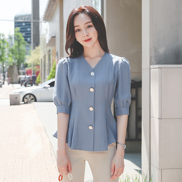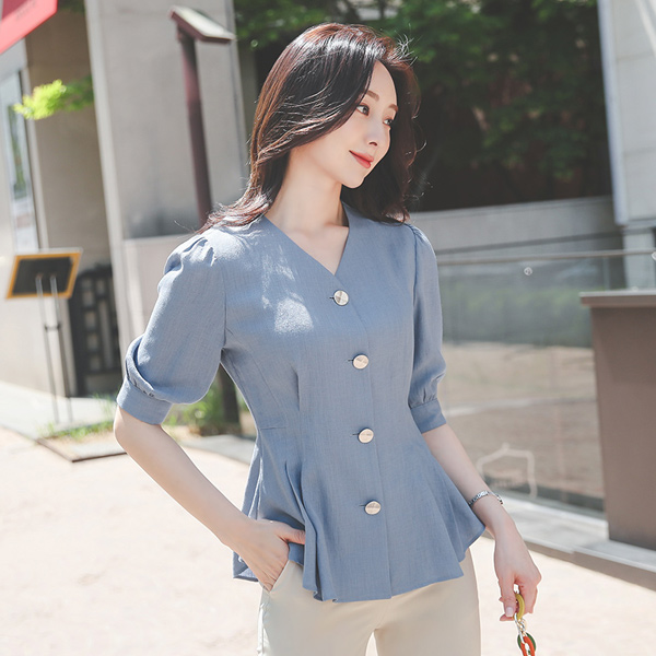 亚麻 质地 细褶 荷叶边 罩衫