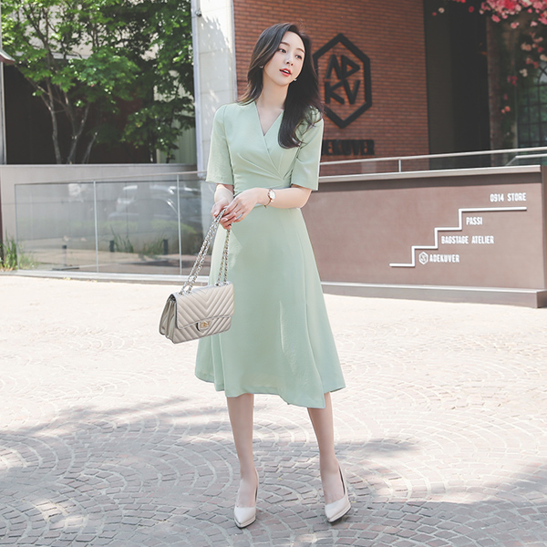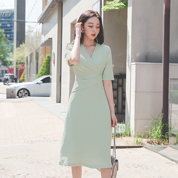 褶皱 弹力 褶皱 裹身 喇叭 连衣裙