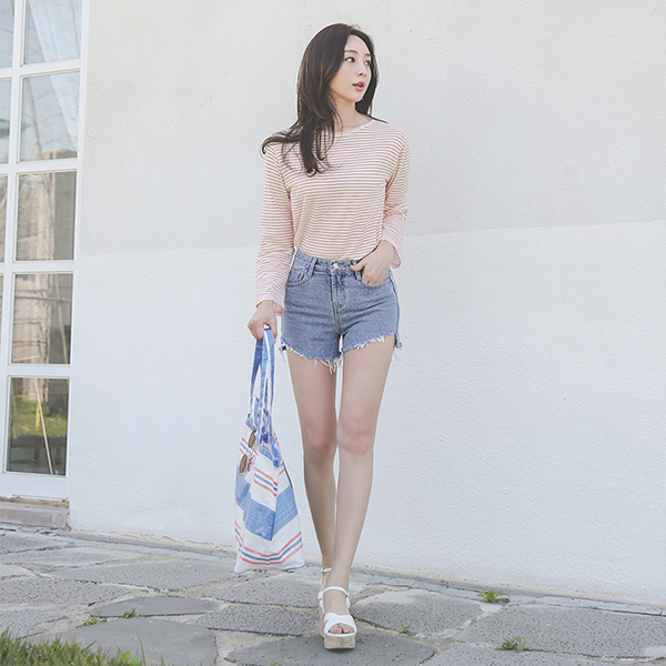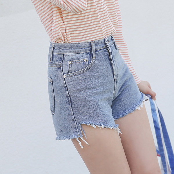 斜线 裁剪 牛仔色 短裤