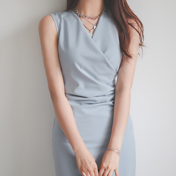 法式 褶皱 Surplice 修身 弹力 连衣裙