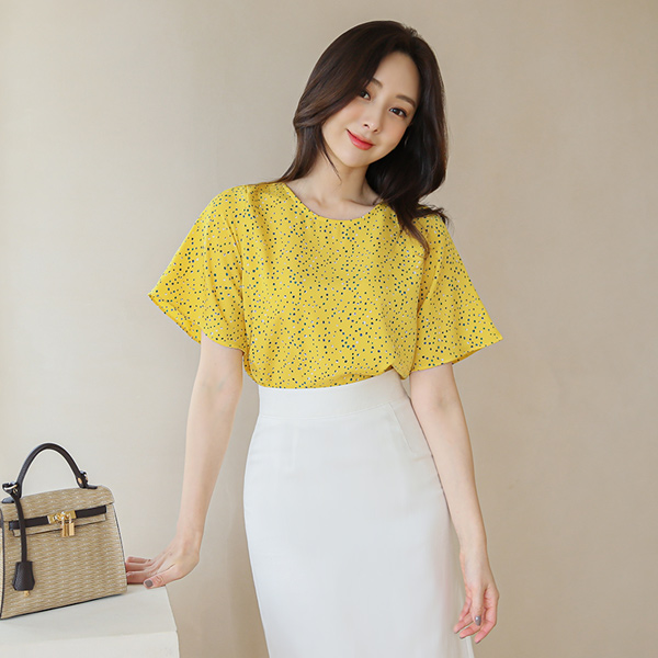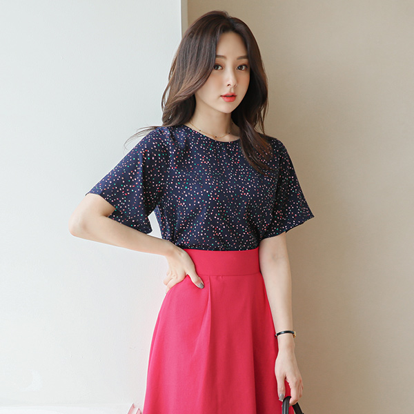 大理石 颜色 圆点 圆领 罩衫