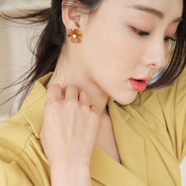 无光皮鞋 花纹 金色装饰 耳环