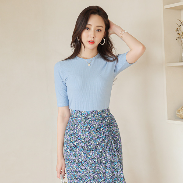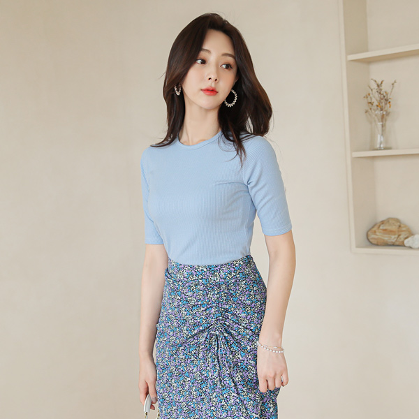 Irene 莫代尔 条绒 5分袖 T恤衫