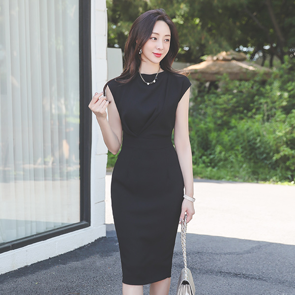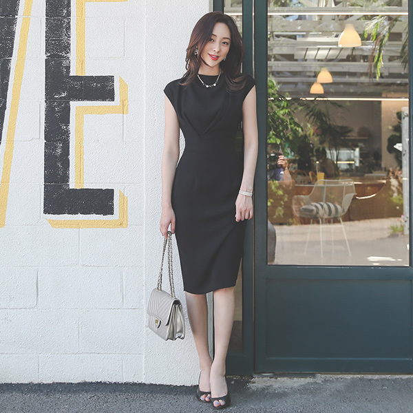 高龄 芬奇 褶皱 帽檐袖 连衣裙