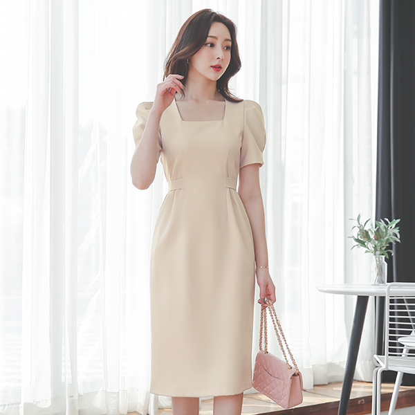 方领 泡泡袖 正装 蝴蝶结 连衣裙