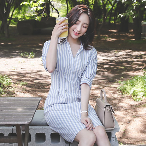 曲线细褶 条纹 衬衫 连衣裙Ⅱ
