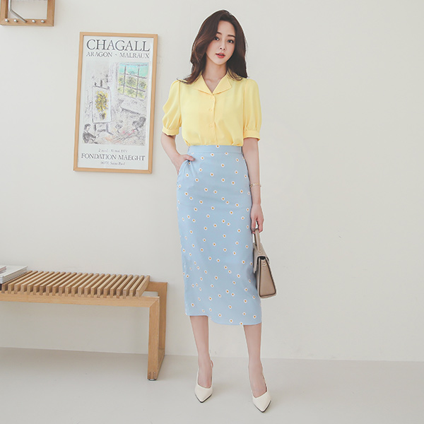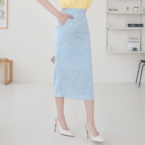 蒲公英 后侧松紧带 口袋 长款 裙子