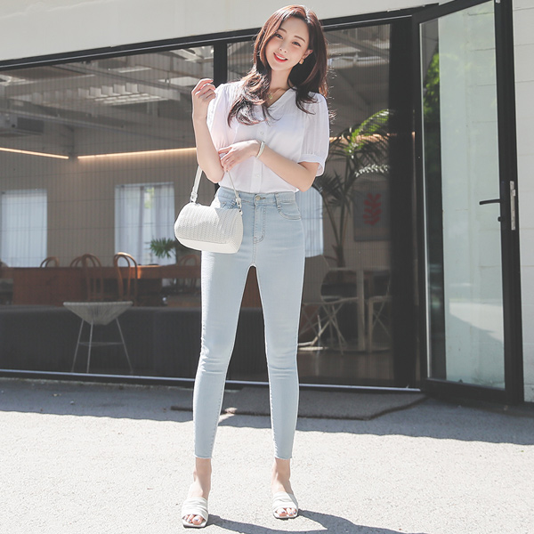 夏天 冰 自然 裁剪 紧身牛仔裤