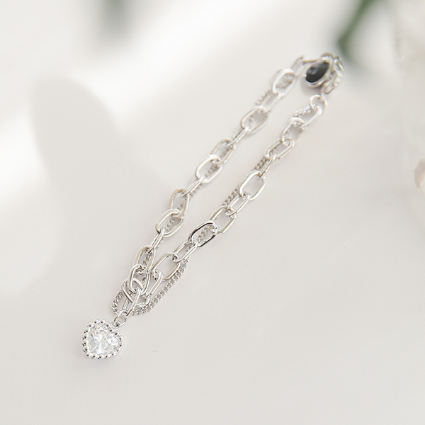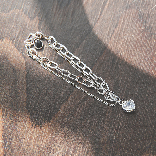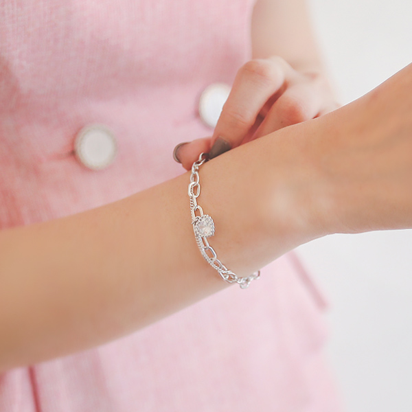 Silver 하트큐빅 分层 镯子