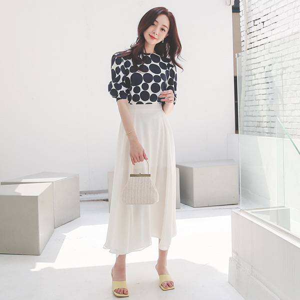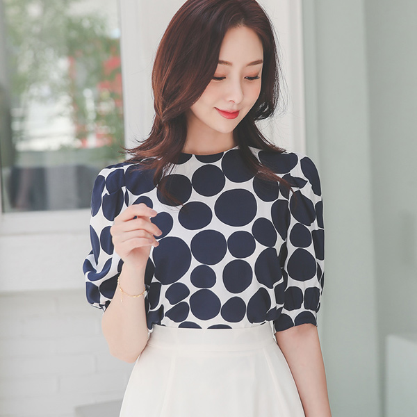 大 圆点 泡泡袖 罩衫