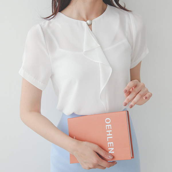 珍珠 开衩 荷叶边线条 袖子细褶 罩衫
