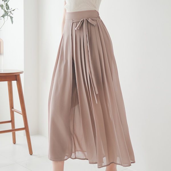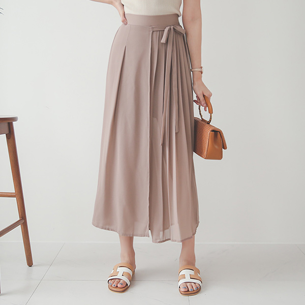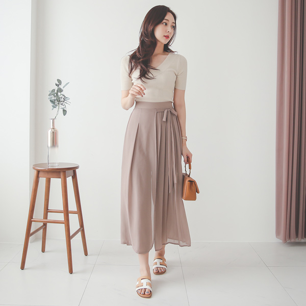 侧纽 蝴蝶结 褶边 雪纺裹身 裙裤风格 裤子