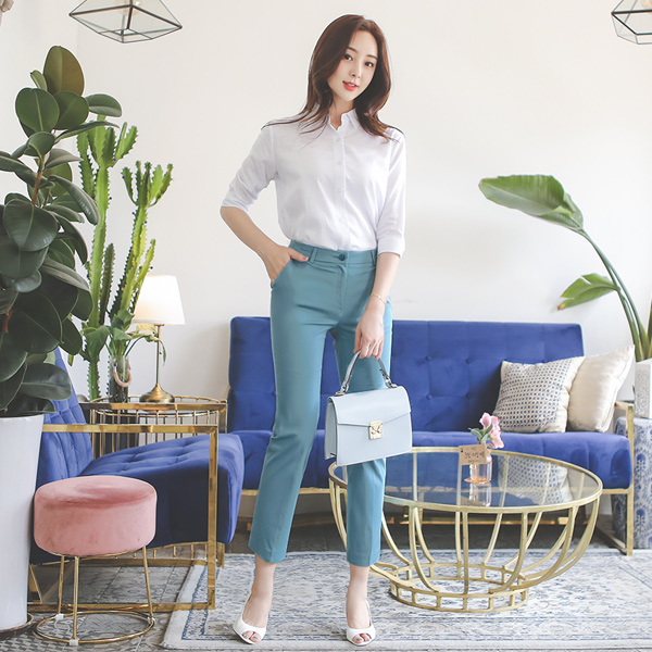 弹力棉 后侧松紧带 基本 宽松长裤