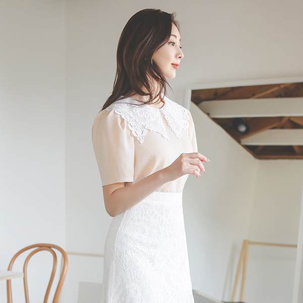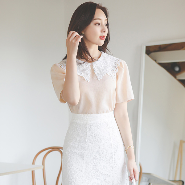 基本花色 二重 蕾丝 大衣领 罩衫
