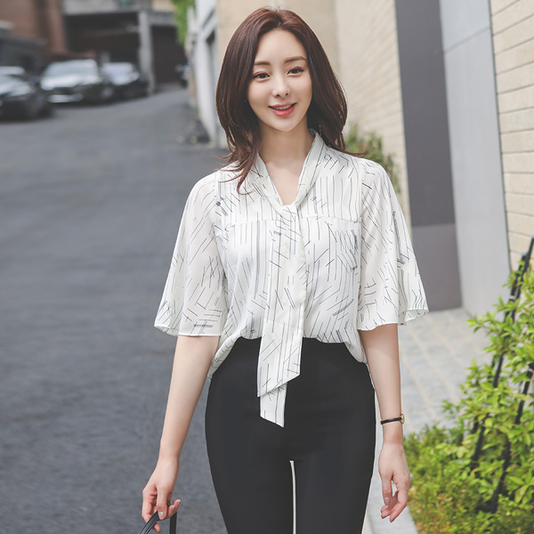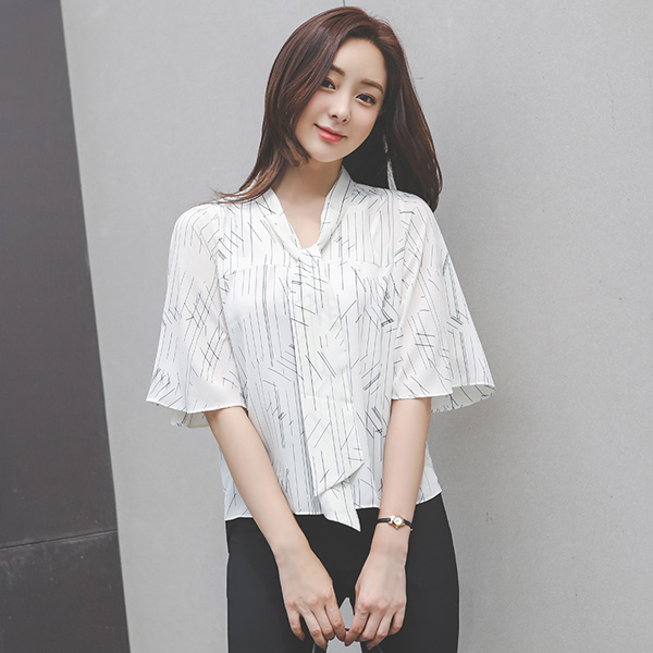 슬래시 图案 飞袖 领带 罩衫