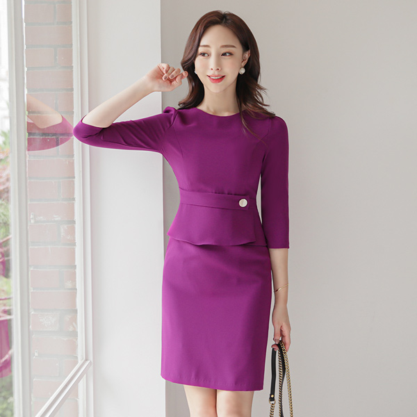 荷叶边 配色钮扣 H字型 弹力 连衣裙(夏季)