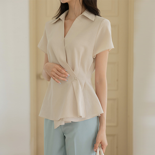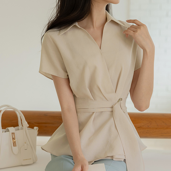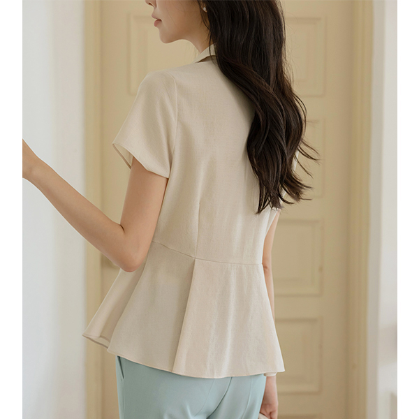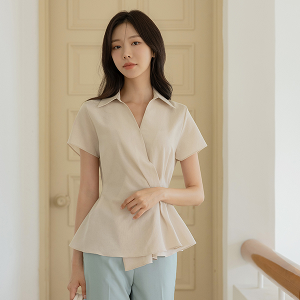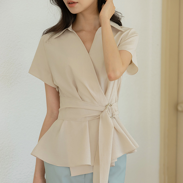 敝领 细褶 喇叭 裹身雪纺衫