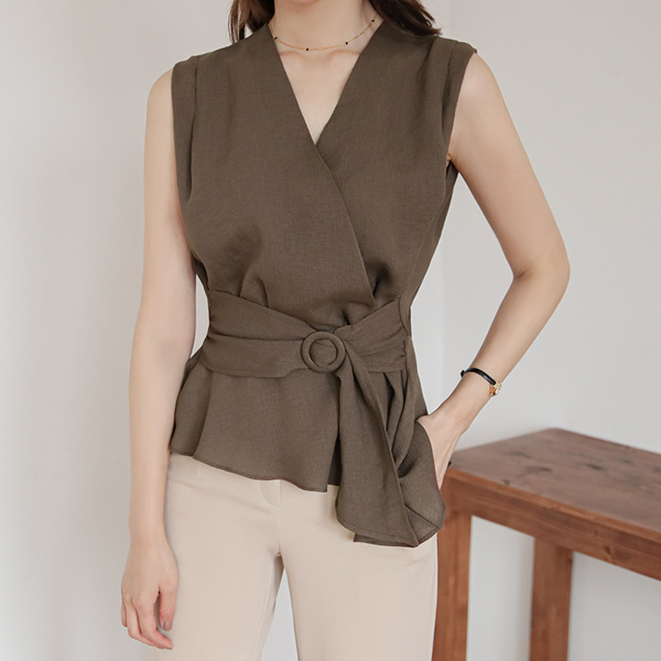 肩膀 细褶 环 腰带 不规则 裹身雪纺衫