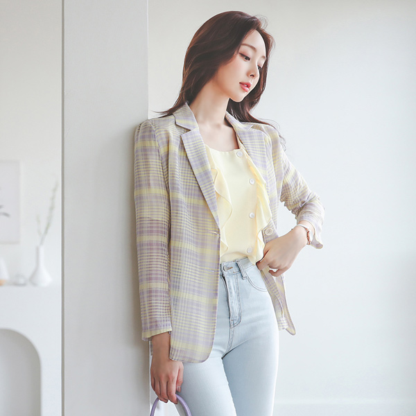 苏格兰格子 透视 夏天 夹克
