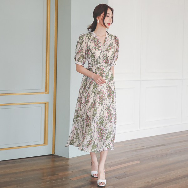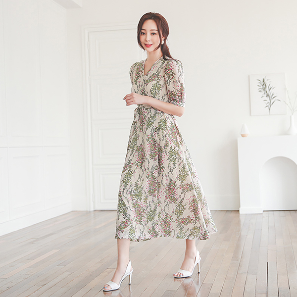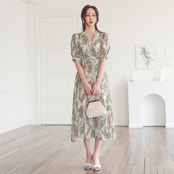 亚麻 质地 格子 花纹 交叉式连衣裙