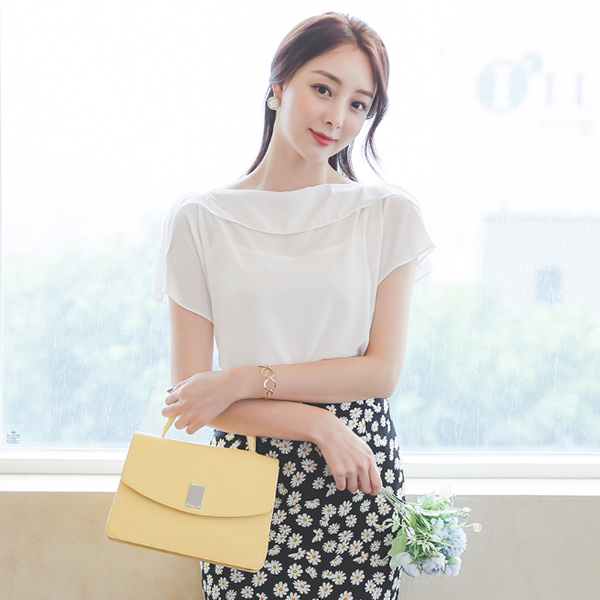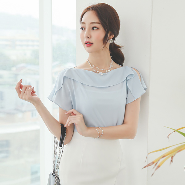 荷叶边线条 开衩 飞袖 船形领 罩衫