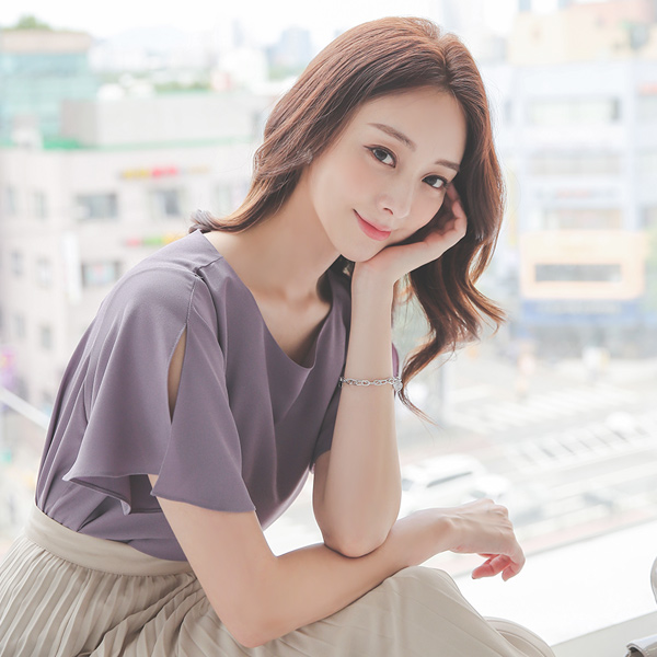 开衩 飞袖 圆领 罩衫