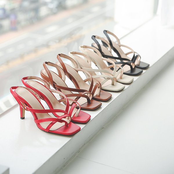不规则 交叉 人字拖 皮条/束带 高跟凉鞋