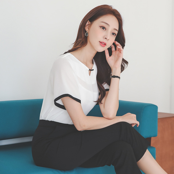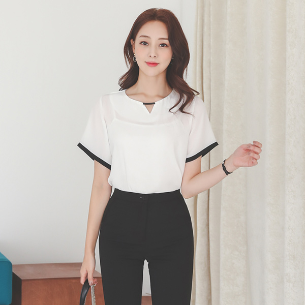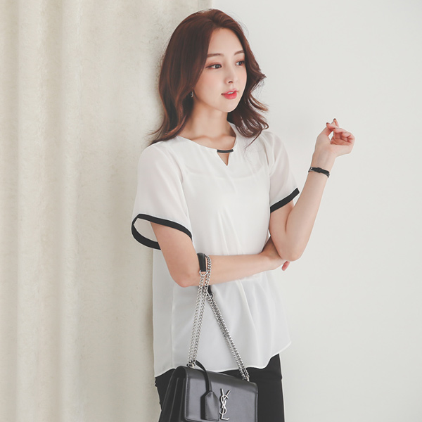Black 银条装饰 配色线 飞袖 罩衫