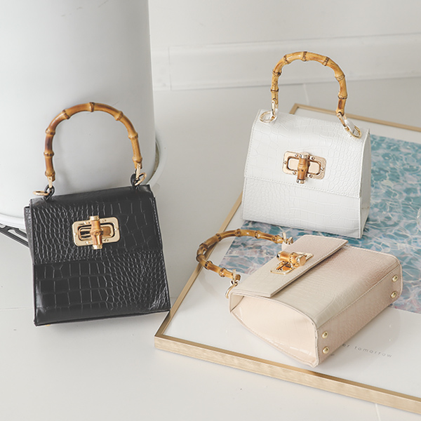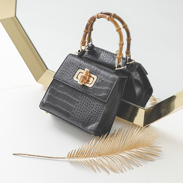 竹节棉 拎手 鳄鱼纹 迷你 手提包
