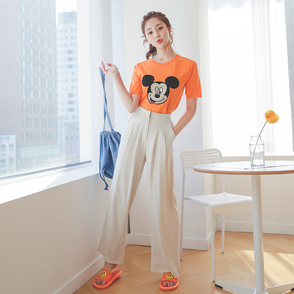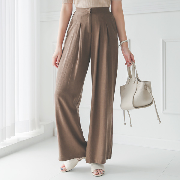 后侧松紧带 双层细褶 亚麻棉混纺 宽松 宽松长裤