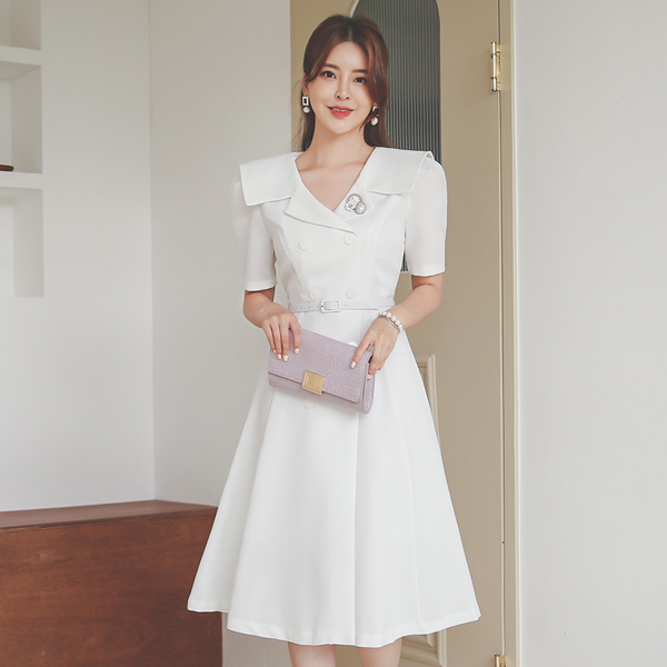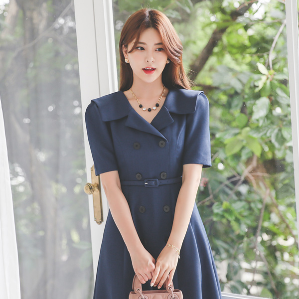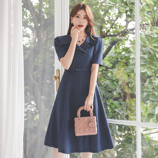 古典 水手 领子 双排扣 喇叭 连衣裙