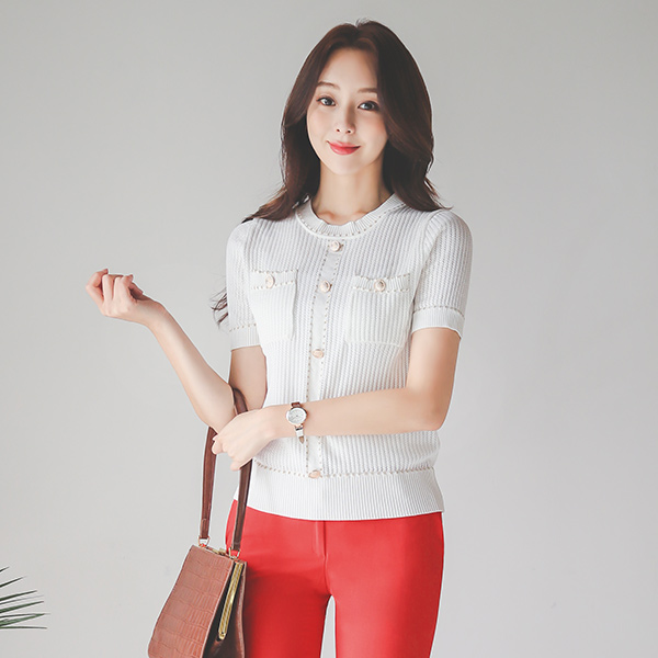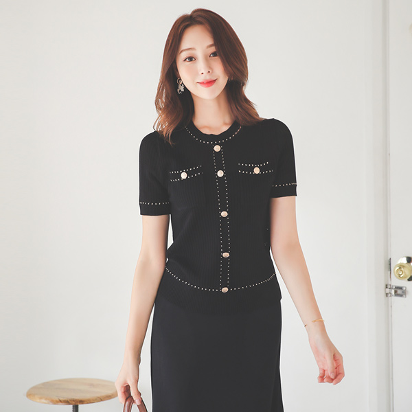 金色线条 花边 纽扣 钻石纹 针织衫