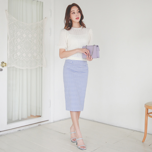 原纱混搭 格子 麻糬 弹力 棉 裙子