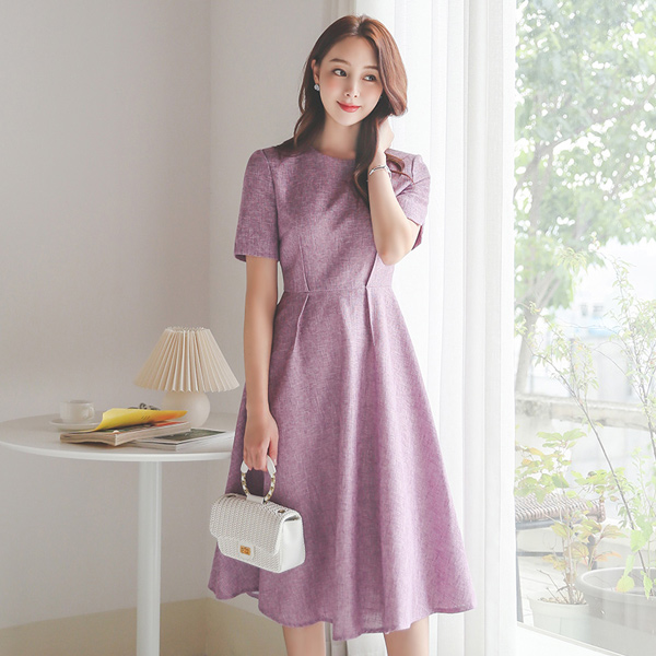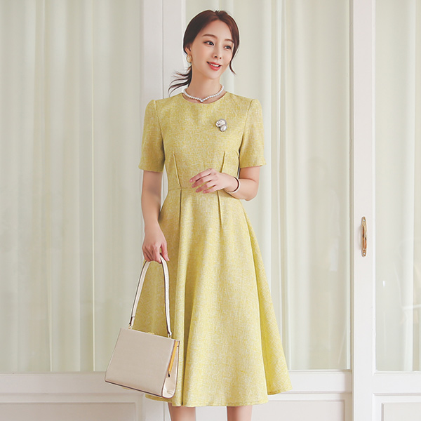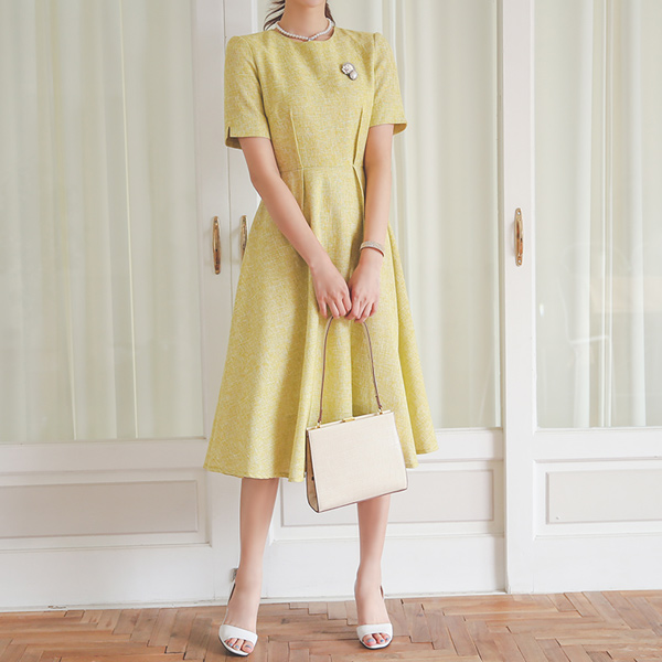 双 细褶 粗呢 喇叭 连衣裙