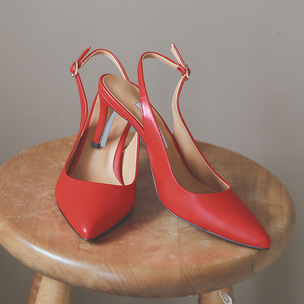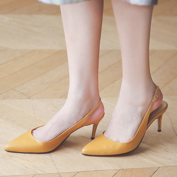 牛皮 简单 露脚后跟鞋 尖头高跟鞋