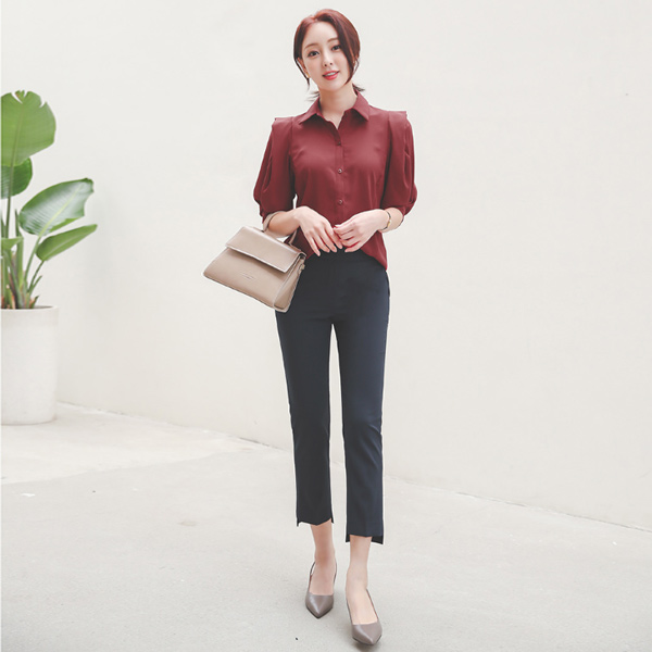 不规则 裁剪 修身 喇叭 弹力 9分 宽松长裤