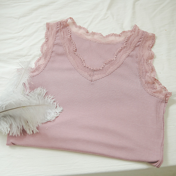 轻飘飘 网状 蕾丝 条绒 背心