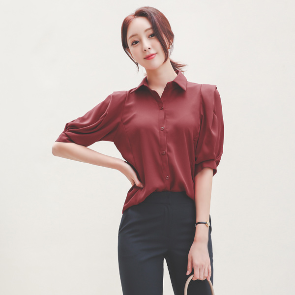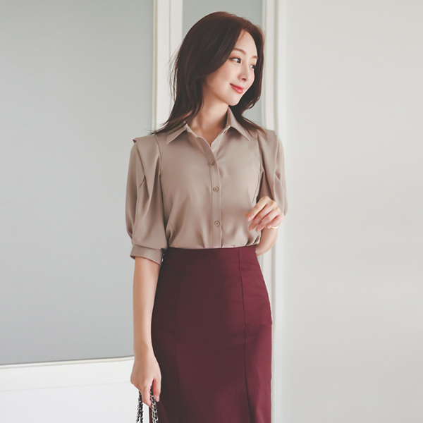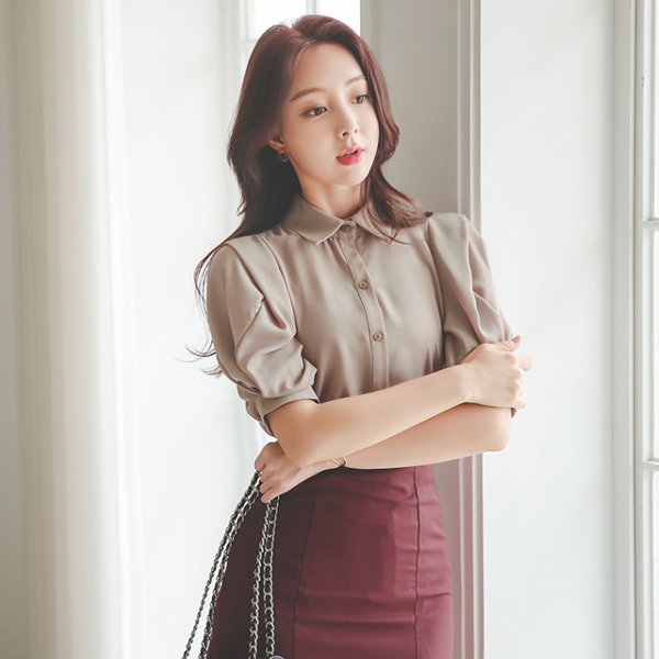 折叠 蓬松袖 领子 罩衫