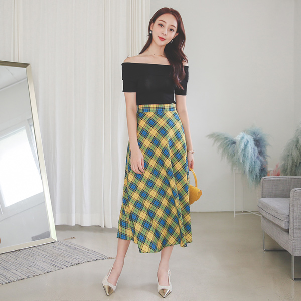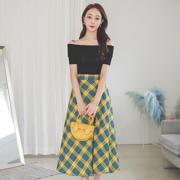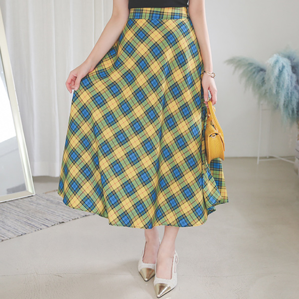 复古 格子 喇叭 裙子