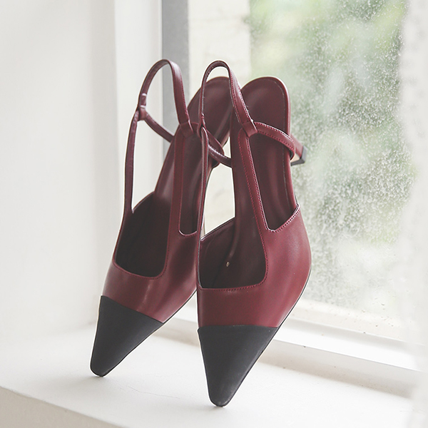 配色 质地 中跟 尖头高跟鞋