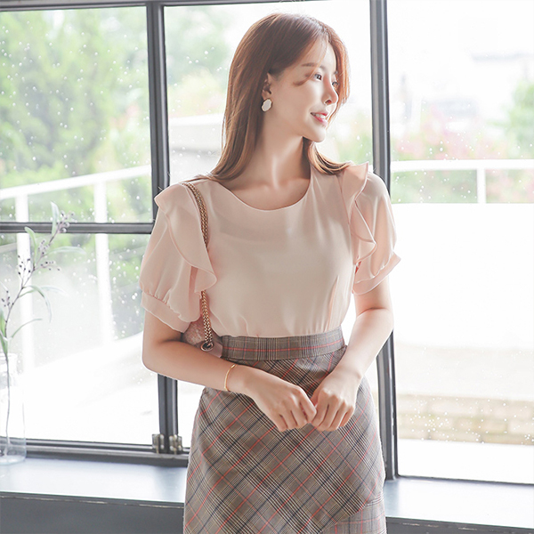 褶裥 泡泡袖线条 半袖 罩衫
