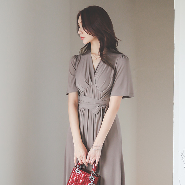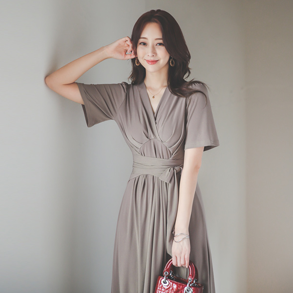 华丽 皱裥打褶 扭 束带 裹身 连衣裙