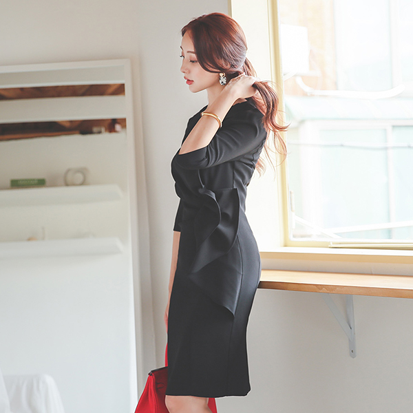 侧纽 不规则 荷叶边线条 古典 连衣裙