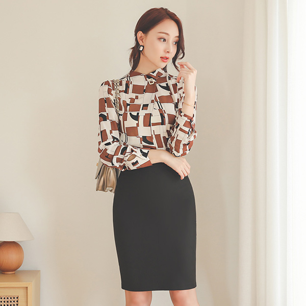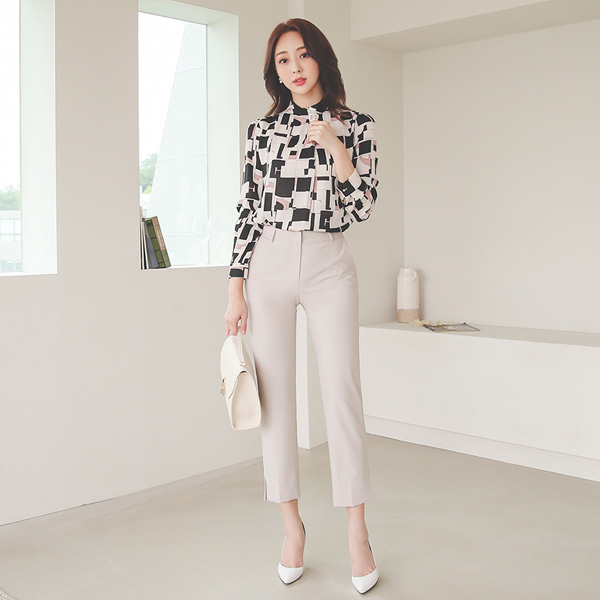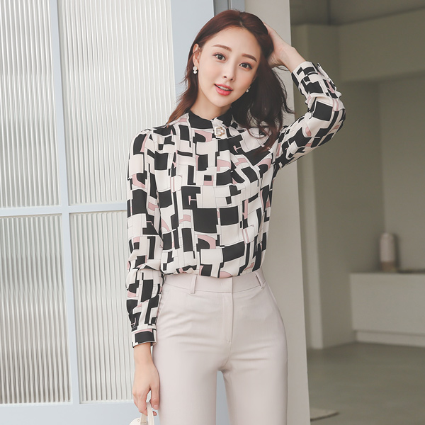 几何线 方形 珍珠 半高领 罩衫