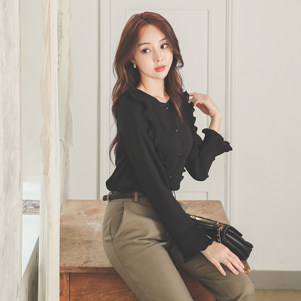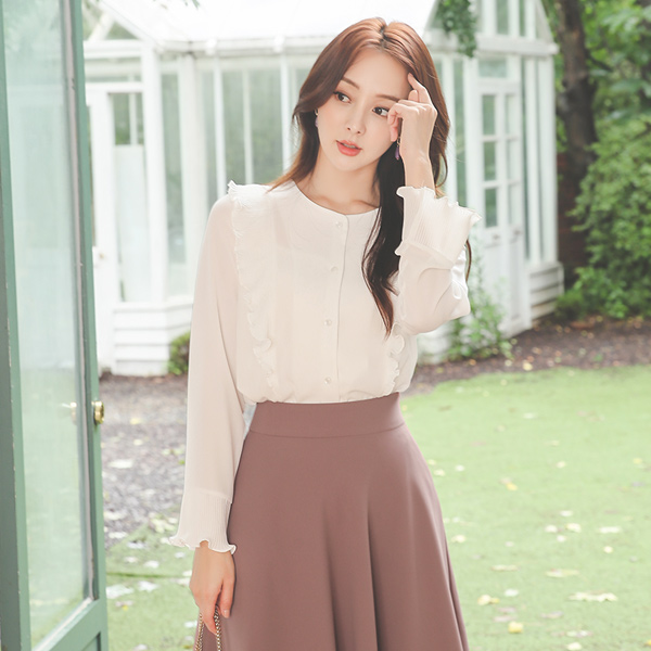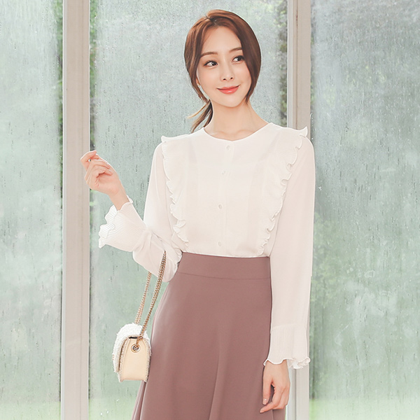 버티컬 去皱纹 宽松袖 罩衫